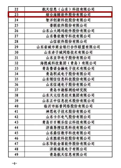 本次集团公司与海颐软件双双入围山东软件企业百强,充分显示公司在山东省软件企业中领先的综合能力。下一步,公司将继续发挥软件百强企业的引领带头作用,为山东省软件和信息技术服务业高质量发展贡献力量。